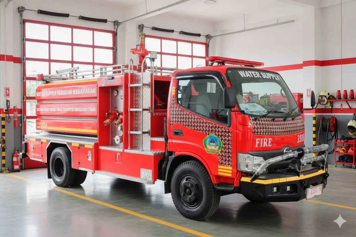 Chassis : Hino, Mitsubishi, Isuzu Kapasitas : 4000 Liter Water Material : - Body Cover : Plat Galvanil 1,2 mm - Tangki Air : Carbon steel yang di Hot Dip Galvanized, dengan ketebalan dinding 4 mm dan dasar tangki 6 mm - Pemipaan : Pipa SCH 40, Hot dip galvanized atau dilapisi anti karat dengan system zinc coat/rust bullet Cabin : Single Cabin or Double Cabin